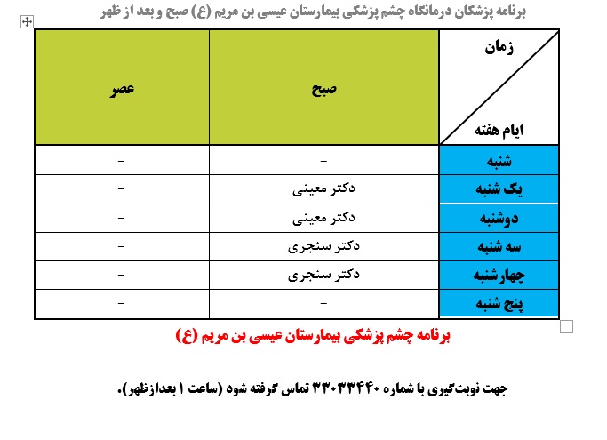 برنامه صبح و عصر درمانگاه