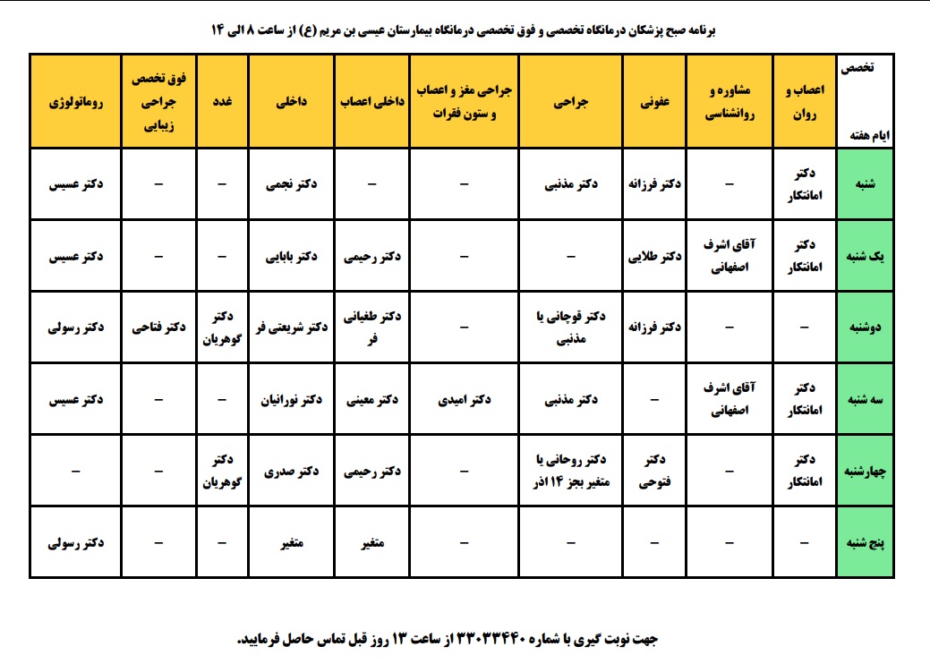 شماره تماس های بیمارستان عیسی بن مریم: 69 -32332065 14 – 32339012