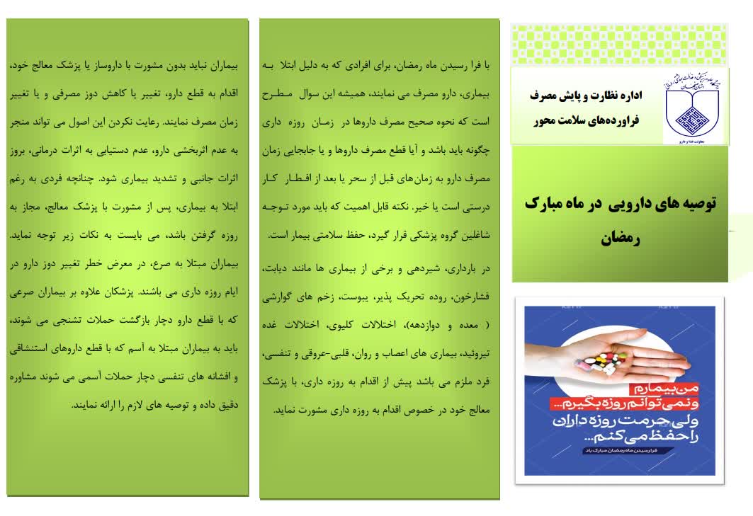 توصیه های دارویی در ماه مبارک رمضان