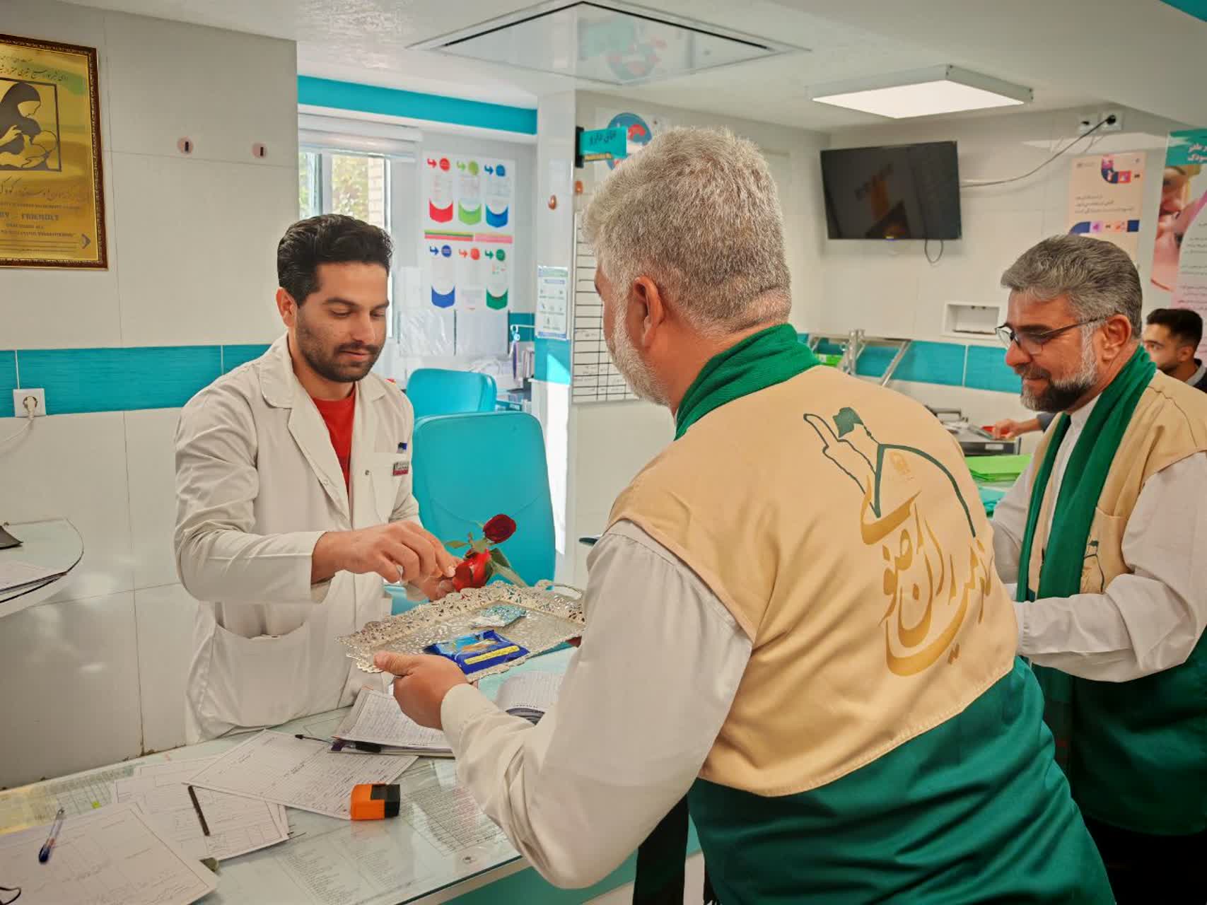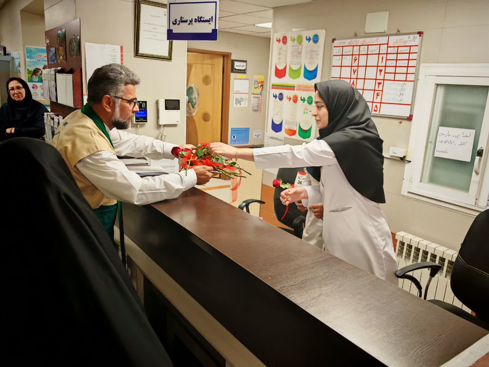 خادمان رضوی با اهدای گل و بستههای متبرک از بارگاه منور امام رضا (ع)، ضمن دیدار با پرستاران و بیماران بستری، از زحمات بیدریغ پرستاران در خدمترسانی به بیماران قدردانی کردند و برای شفای همه بیماران دعا نمودند.