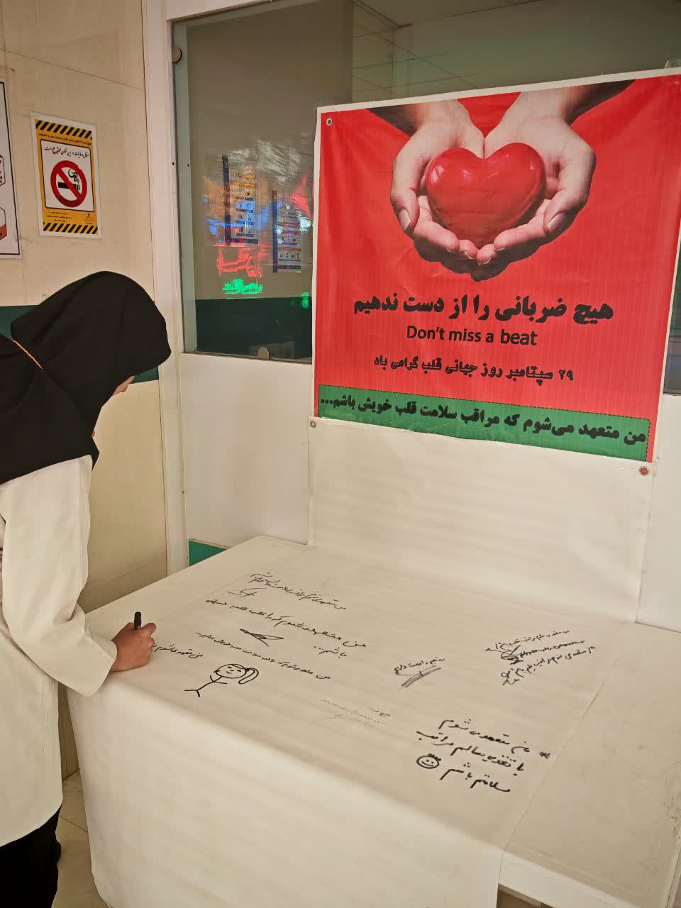 همزمان با روز جهانی قلب، مراسمی با هدف ترویج فرهنگ مراقبت از سلامت قلب در سالن ورودی بیمارستان برگزار شد.
